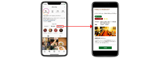 TABLE REQUESTはInstagramと提携し、お店のInstagramアカウントから簡単に予約を受け付けることができるようになりました。